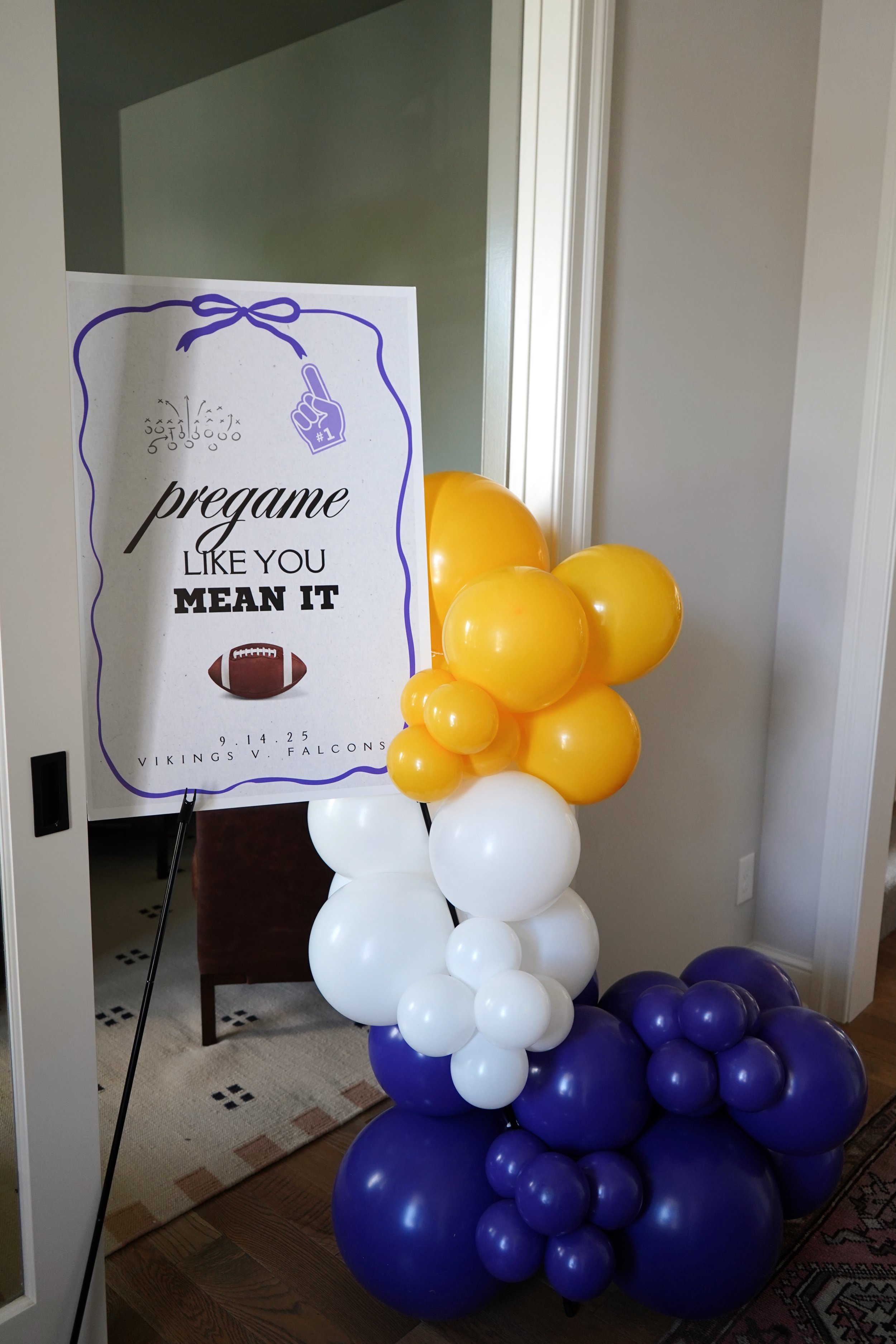 Step inside our Minnesota Vikings WAGs pregame party — a glam game-day experience fully brought to life by Paysen’s Parties. We handled every detail from planning, vendor sourcing, coordinating, and managing the day, to designing custom signage, curating luxe swag bags, organizing transportation, and transforming the space with bold, eye-catching décor. The event featured 8-foot balloon garlands framing the entrance, glowing LED marquee SKOL letters, a mobile charcuterie cart by Bee & Blossom, permanent jewelry bag bar by Bound NOLO, and a custom signature drink menu from Dirty Sota MN — all captured by our incredible local photographer/content creator, Media by J. With over 30 Vikings WAGs in attendance, this unforgettable celebration showcased the best of our local small-business community while delivering the perfect mix of glam and game-day energy.